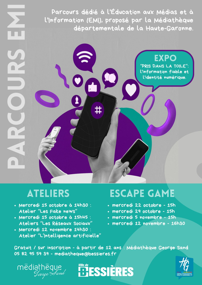 La médiathèque Georges Sand de Bessières propose des ateliers d'Education aux Médias et à l'Information du Mardi 23 Septembre 2025 à 15h38 au Mercredi 12 Novembre 2025 à 18h00.