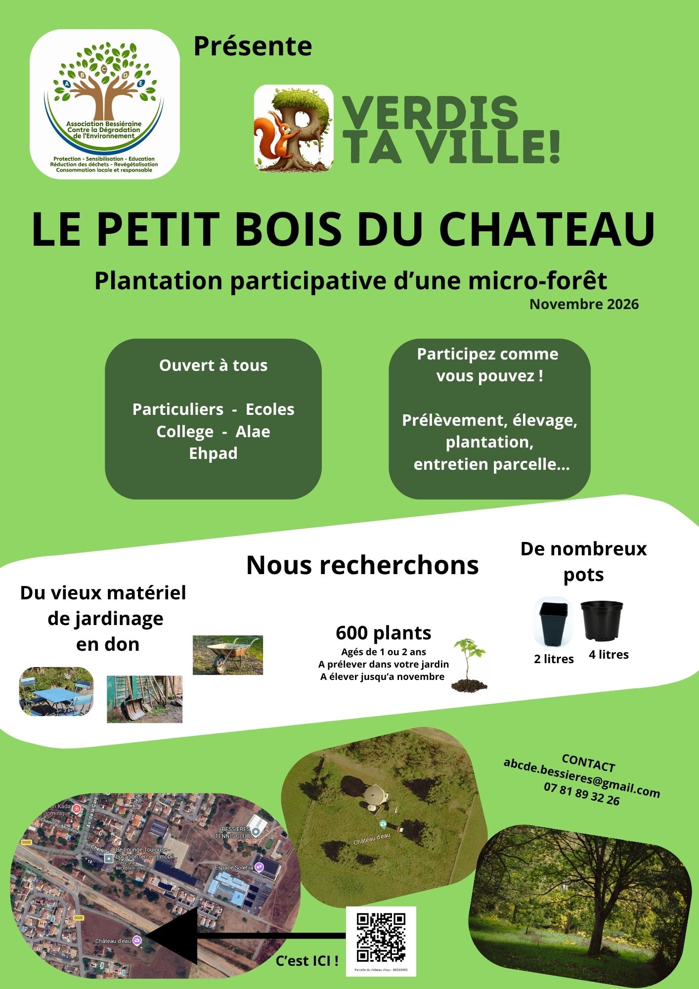 La plantation d'une micro-forêt est prévue, à Bessières, en novembre 2026. Les écodélégués du collège participent à ce projet proposé par l'association ABCDE et vous proposent de vous joindre à eux.